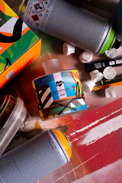 Beautifully packaged with Maser’s unique signature striking colourful graphic style, this 200ml reed diffuser features top notes of dark plum and davana, blended with saffron on a base of smoked cedarwood, aged leather suede and amber. This fragrance was inspired by Maser's love for the outdoors that he rediscovered during lockdown carrying smokey tones reminiscent of story telling around a camp fire while evoking a sense of relaxation and calm.